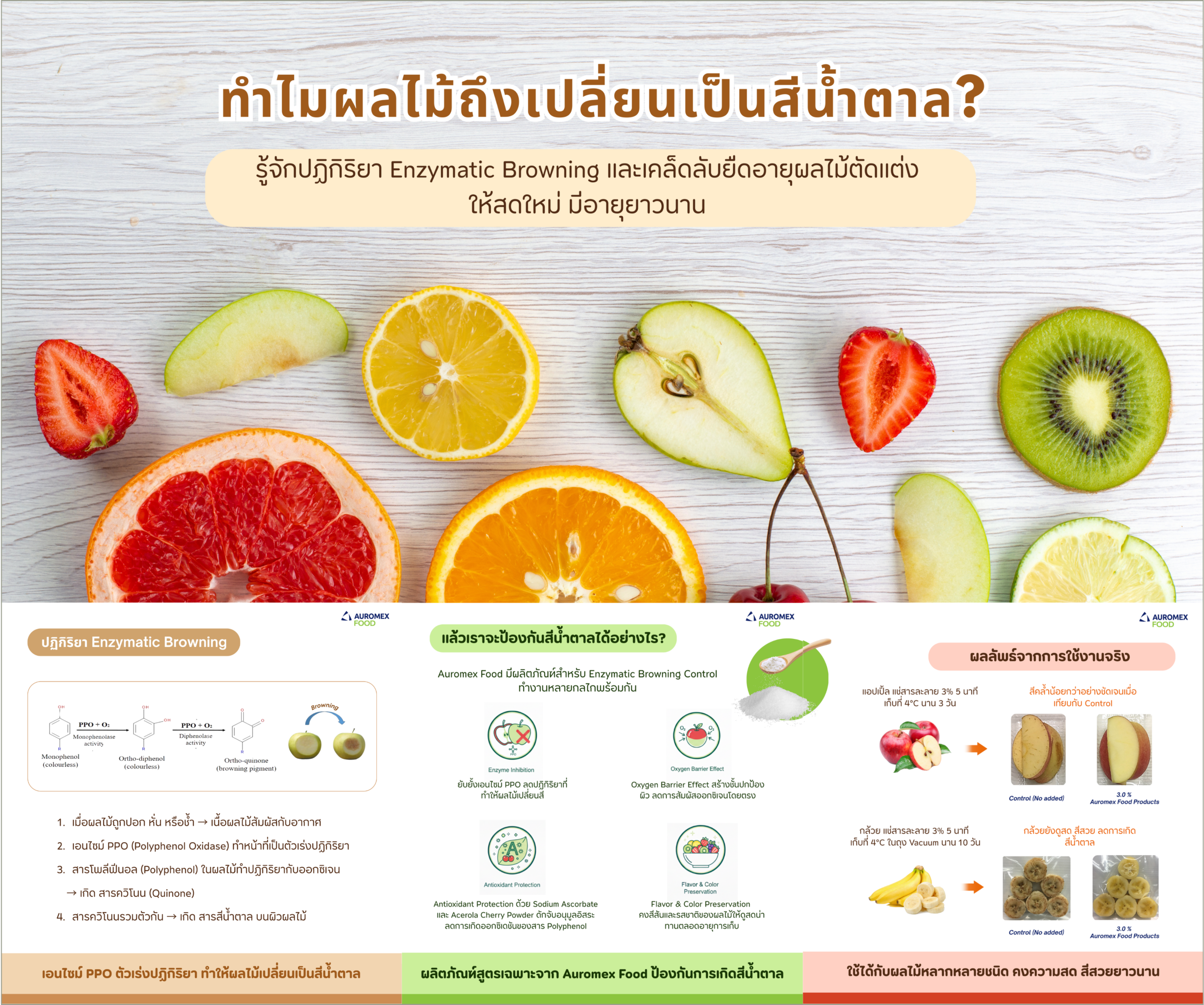 Auromex Food offers a multi-mechanism Enzymatic Browning Control solution: