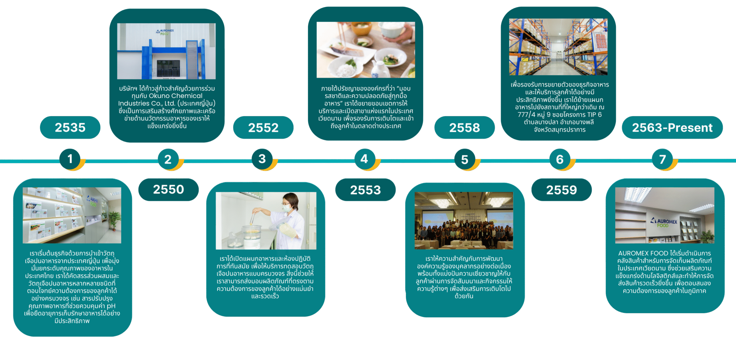 AUROMEX FOOD เป็นส่วนหนึ่งของบริษัท ออโรเม็กซ์ จำกัด ผู้เชี่ยวชาญด้านบริการครบวงจรในอุตสาหกรรมชุบเคลือบโลหะ ทั้งในประเทศไทยและภูมิภาคอาเซียน จากประสบการณ์และความเชี่ยวชาญอย่างยาวนาน เราได้ขยายธุรกิจสู่การก่อตั้ง “Auromex Food” เพื่อมุ่งเน้นการพัฒนาและจัดจำหน่ายวัตถุเจือปนอาหารและส่วนผสมอาหารที่มีฟังก์ชันเฉพาะ